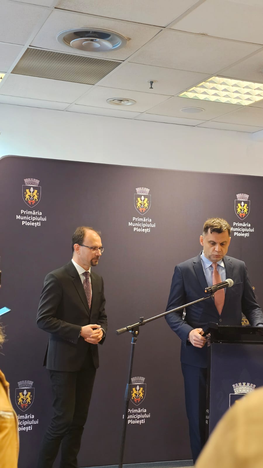 La conferinta de presă participă alături de primarul Mihai Politeanu, si Alexandru Voiculescu, directorul adjunct al firmei care va executa lucrările si Adrian Dobre fostul primar al orasului, în mandatul căruia proiectul a fost depus spre finanțare.